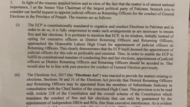 پاکستان تحریک انصاف (پی ٹی آئی) نے پنجاب کے انتخابات میں ماتحت عدلیہ سے ڈسٹرکٹ ریٹرننگ افسر (ڈی آر او)…
