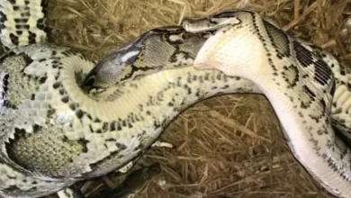 دنیا میں پہلی بار ایک بڑے اژدھے کو خود سے بھی بڑے سائز کے اژدھے کو ثابت نگلتےہوئے دیکھا گیا۔…