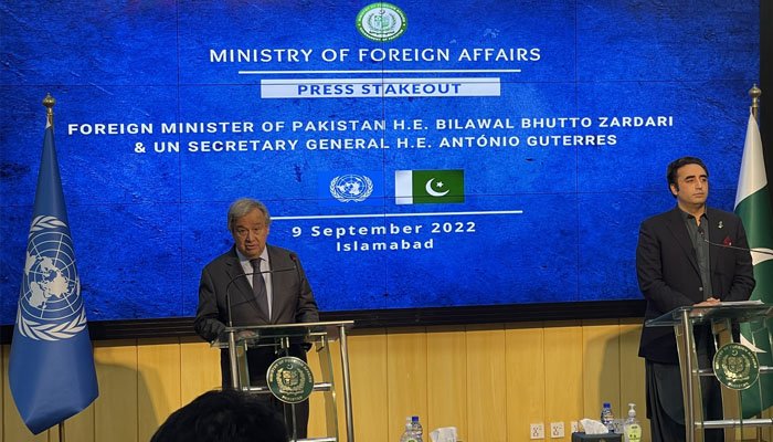 انتونیو گوتریس نے کہا کہ پاکستان ان ملکوں میں شامل ہے جن کو موسمیاتی تبدیلیوں کے چیلنجز کا سامنا ہے۔ وزیراعظم شہباز شریف اور دیگر حکام سے ملاقاتیں ہوئی ہیں۔