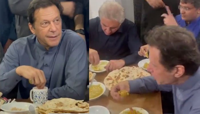 سابق وزیر اعظم عمران خان کی سادگی اور ڈھابوں سے کھانا کھاتے ہوئے ویڈیوز اس سے قبل بھی وائرل ہوتی رہی ہیں۔ وائرل ویڈیوز میں دیکھا جا سکتا ہے کہ وہ دو مختلف ڈھابوں پر بیٹھے ہیں۔