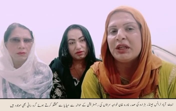 پراونشل یوتھ اسمبلی کی سینیٹر فوکل پرسن سوشل ویلفیئر مانسہرہ خواجہ سراء ہزارہ ریجن کی صدر نادرہ خان نے کہا ہے کہ ضلعی انتظامیہ کی ہدایت پر ایبٹ آباد میں سوشل ویلفیئر ڈیپارٹمنٹ میں خواجہ سراؤں کی رجسٹریشن کا عمل جاری ہے۔