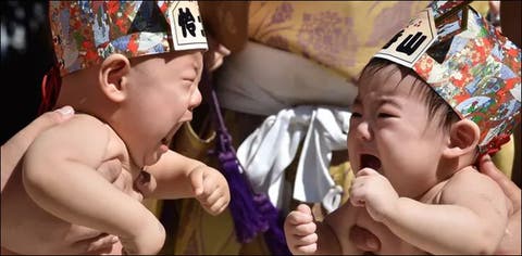 دودھ پیتے بچوں کے رونے کا مقابلہ
