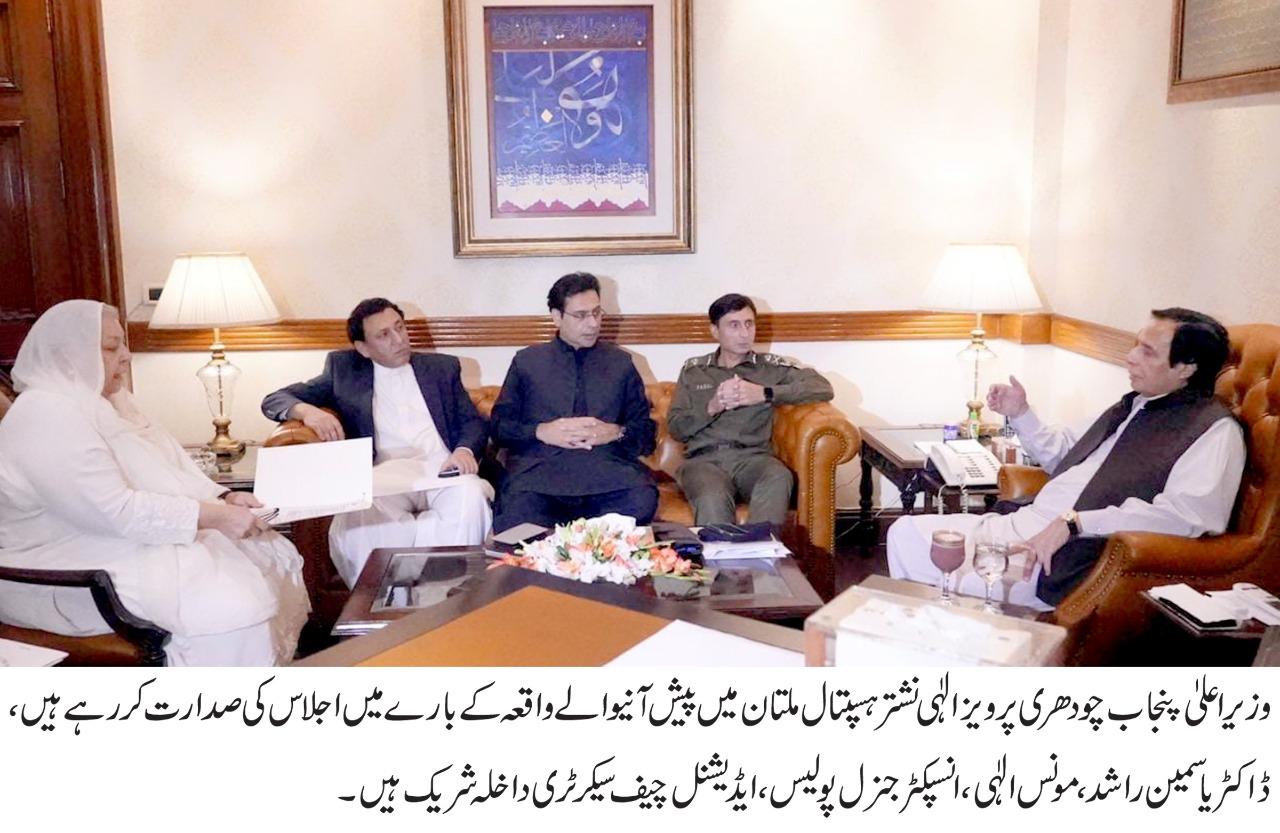 وزیراعلیٰ پنجاب چودھری پرویز الٰہی کی زیر صدارت آج وزیراعلیٰ آفس میں اعلی سطح کا اجلاس منعقد ہوا۔اجلاس میں صوبائی وزیرسپیشلائزڈ ہیلتھ کیئر اینڈ میڈیکل ایجوکیشن ڈاکٹر یاسمین ر اشد،سابق وفاقی وزیر مونس الٰہی،انسپکٹر جنرل پولیس فیصل شاہکار،ایڈیشنل چیف سیکرٹری داخلہ کیپٹن (ر)اسد اللہ،سپیشل سیکرٹری سپیشلائزڈ ہیلتھ کیئر اینڈ میڈیکل ایجوکیشن اورمتعلقہ حکام نے شرکت کی۔