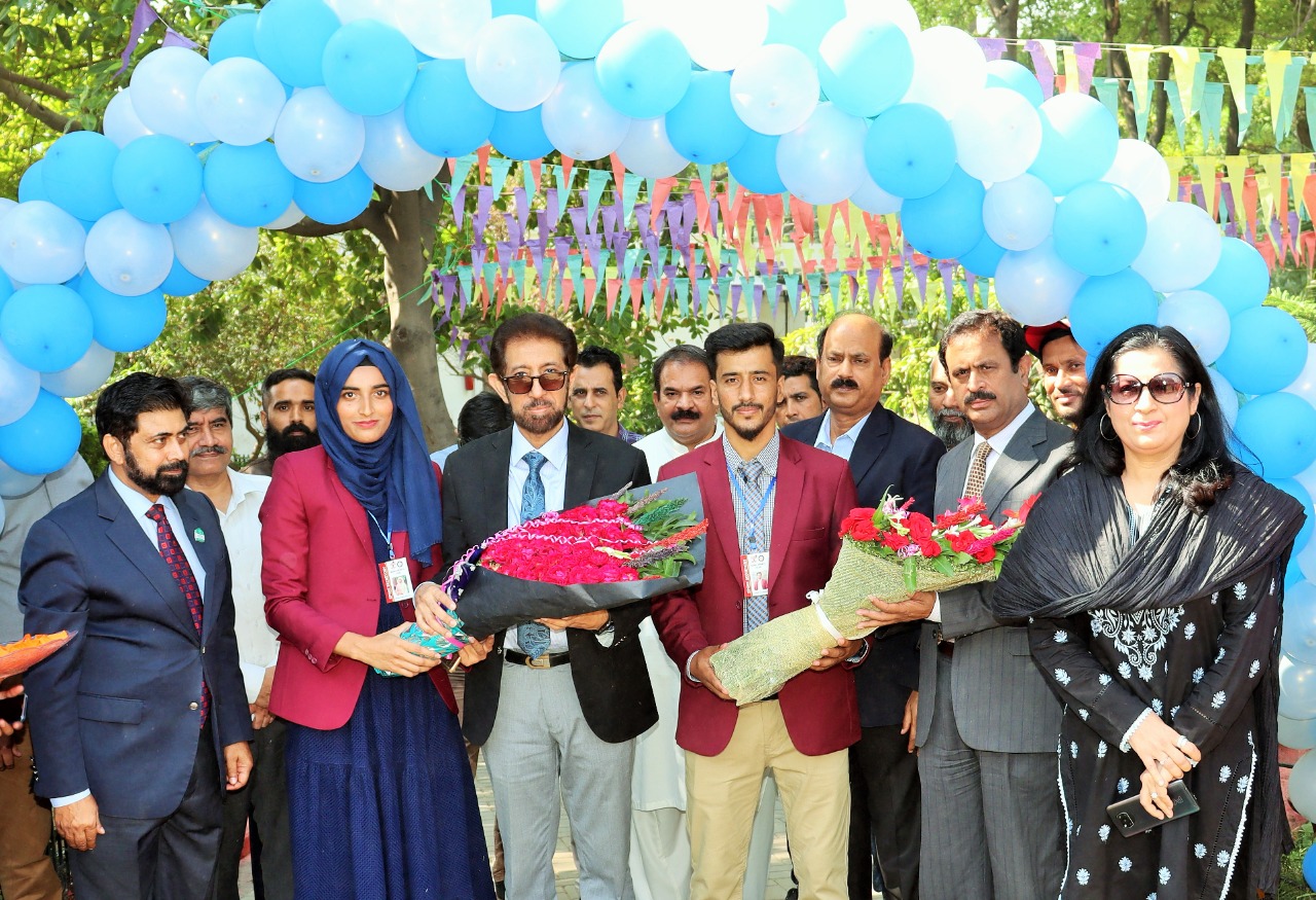 کنگ ایڈورڈ میڈیکل یونیورسٹی کے زیر اہتمام 162 ویں سالانہ سپورٹس گالہ کے انعقاد کے موقع پر سپورٹس سیکرٹری صفت اللہ صافی اور مبشرہ ارشد وائس چانسلر پروفیسر محمود ایاز کو پھولوں کا گلدستہ پیش کرتے ہوئے اس موقع پر پرو وائس چانسلر پروفیسر اعجاز حسین، رجسٹرار ڈاکٹر ریاست علی، سپورٹس پریزڈنٹ پروفیسر ابرار اشرف اور دیگر موجود ہے۔