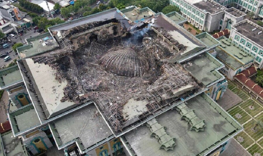 انڈونیشیا کے دارالحکومت جکارتہ کی گرینڈ جامع مسجد میں آگ لگنے کے بعد مسجد کا گنبد مکمل طور پر منہدم ہوگیا ہے۔