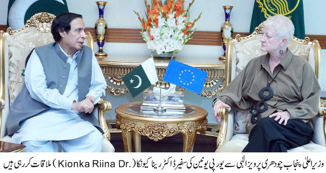 وزیراعلیٰ پنجاب چودھری پرویز الٰہی سے آج وزیراعلیٰ آفس میں یورپی یونین کی سفیر ڈاکٹر رینا کیونکا (Dr. Riina Kionka) نے ملاقات کی،جس میں باہمی تعلقات کے فروغ اور مختلف شعبوں خصوصاپانی کے نئے ذخائر کی تعمیراورسمال ڈیمزبنانے کے حوالے سے تعاون بڑھانے پر تبادلہ خیال کیاگیا۔