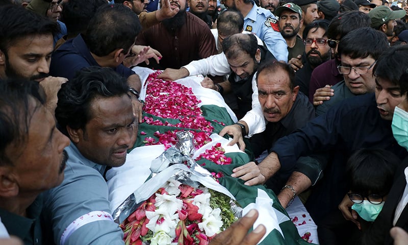 کینیا پولیس کی مبینہ فائرنگ سے قتل ہونے والے معروف صحافی ارشد شریف کو ہزاروں افراد کی موجودگی میں اسلام آباد کے ایچ-11 قبرستان میں فوجی اعزاز کے ساتھ سپرد خاک کردیا گیا۔