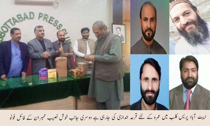 ایبٹ آباد(نمائندہ خصوصی) ایبٹ آباد پریس کلب کی جنرل باڈی کا اجلاس ہوا جس میں اہم فیصلے کئے گئے ۔ جن میں نئی ممبر شپ دینے کے ساتھ ساتھ عمرے ،موٹر سائیکل اور لیب ٹاپ کی قرعہ اندازی کی گئی ۔