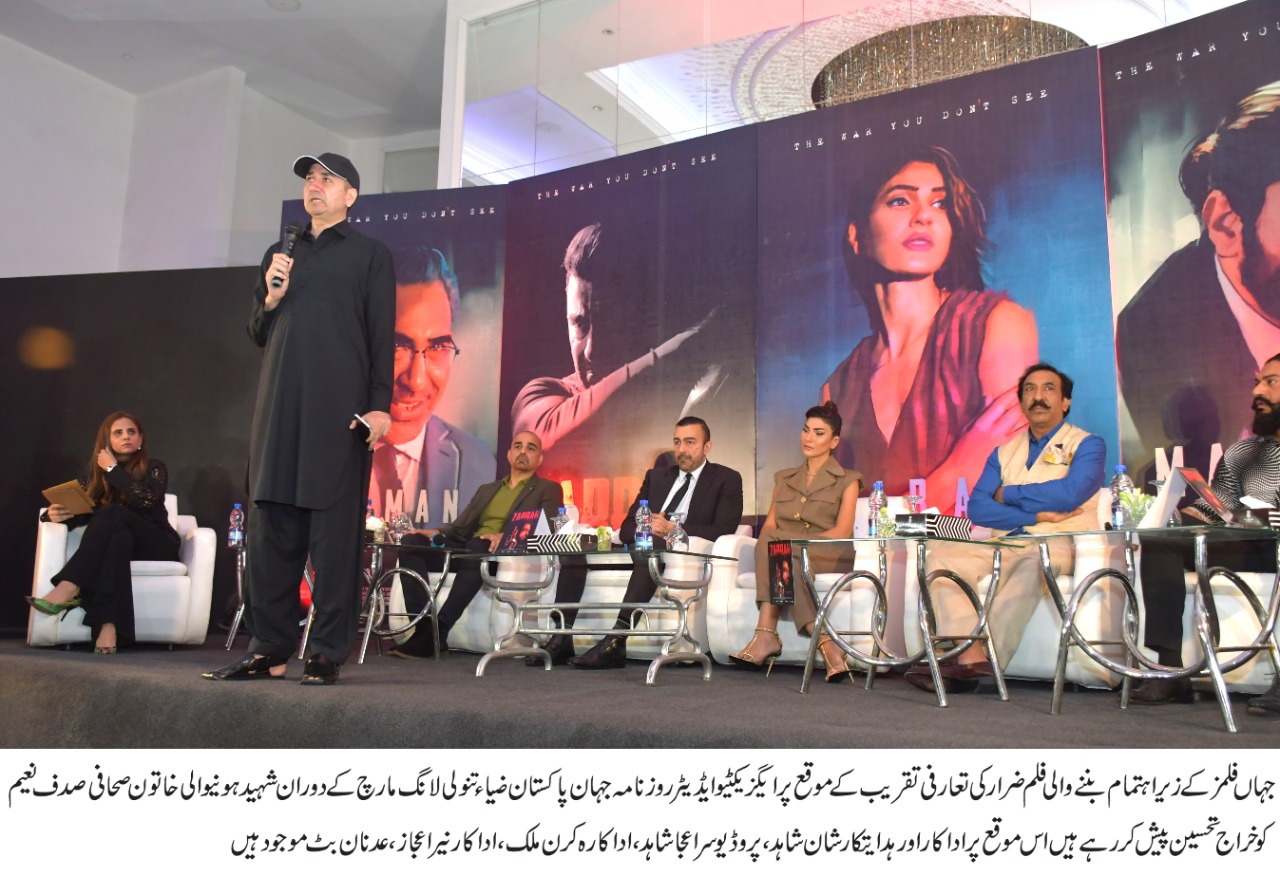 طویل انتظار کے بعد "جہان فلمز "کے زیر اہتمام بننے والی بہت جلد پاکستانی سینماﺅں کی زینت بننے والی میگا بجٹ ، میگا کاسٹ، ایکشن اور سنسنی سے بھرپور ، عالمی معیار کی پاکستانی فلم ”ضرار“ کے ستار وں نے گذشتہ روز نشاط ہوٹل ایمپوریم مال میں پریس کانفرنس کا انعقاد کیا گیا جس میں فلم کے ہدایت کار شان ، پروڈیوسر اعجاز شاہد ،کرن ملک ،عدنان بٹ اور سنیئر اداکار نیئر اعجاز، ڈاکٹرمریم کیانی سمیت فلم کی مکمل کاسٹ ، سوشل میڈیا اورشوبز صحافیوں کی بڑی تعداد نے شرکت کی ۔
