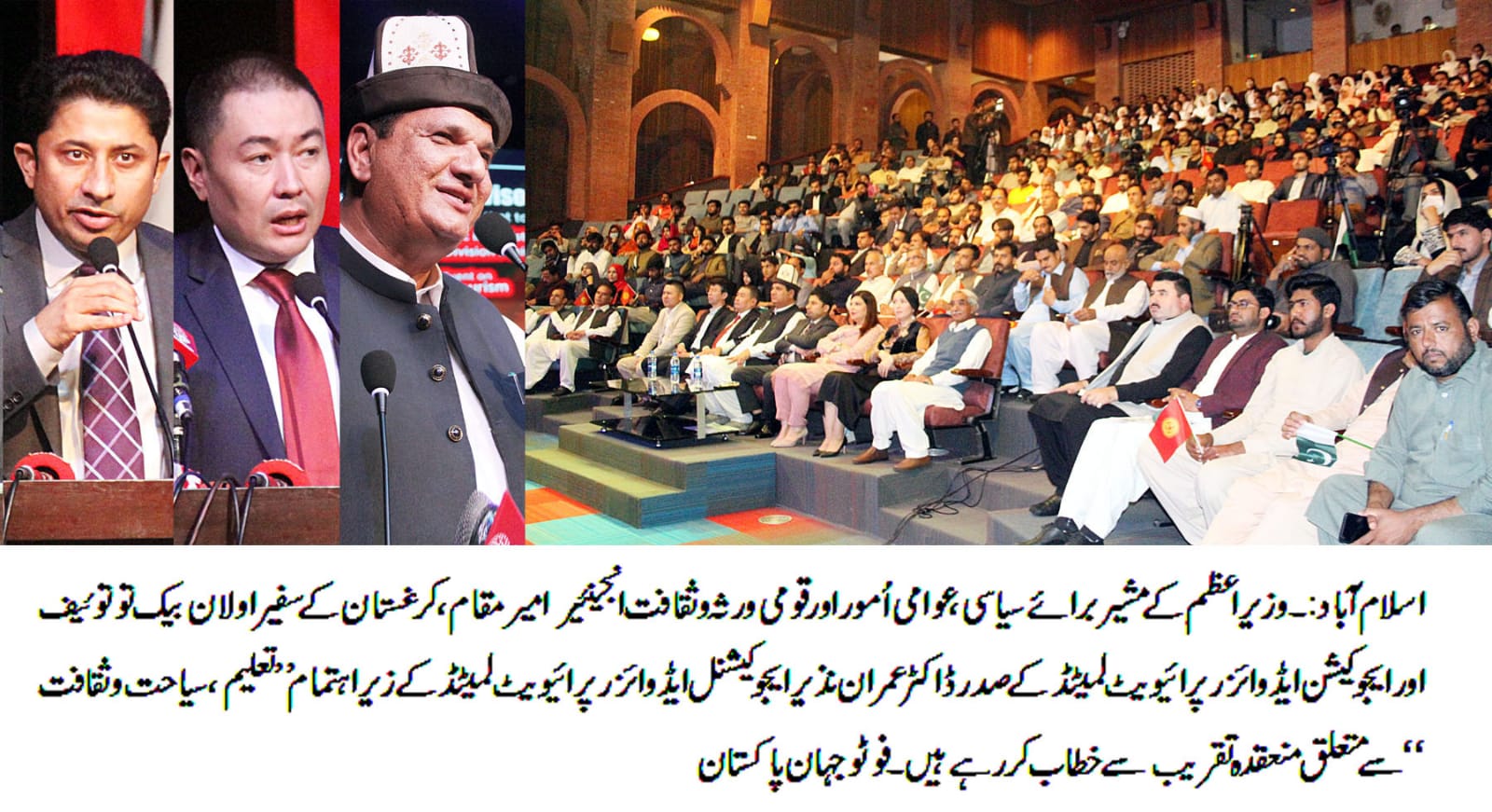 تقریب سے خطاب کرتے ہوئے وزیراعظم کے مشیر برائے سیاسی و عوامی امور و قومی ورثہ و ثقافت انجینئر امیر مقام نے کہا کہ پاکستان اور کرغزستان دوطرفہ سیاحت کو فروغ دیں گے۔