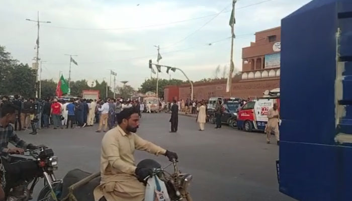 احتجاج کے لیے پی ٹی آئی کے کئی سو کارکنان نمائش چورنگی پر موجود ہیں۔