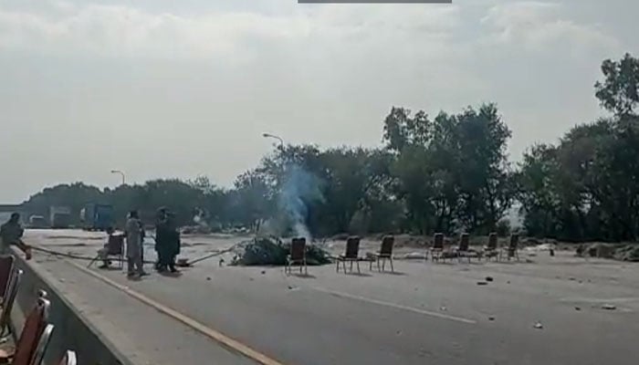 پی ٹی آئی کارکنوں کا ایم ٹو موٹروے پر دوسرے روز بھی احتجاج جاری ہے، مظاہرین نے ٹائر اور موٹروے کے اطراف میں لگی جھاڑیوں کو نذر آتش کر دیا ہے ۔