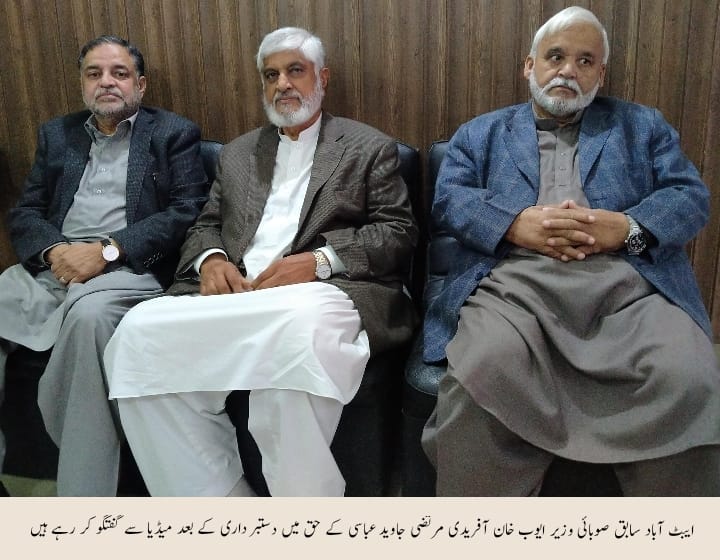 ان خیالات کا اظہار انہوں نے یہاں ایبٹ آباد میں میڈیا سے گفتگو کرتے ہوئے کیا اس موقع پر پارٹی کے سینئر رہنما سردار عبدالرشید ،ملک شفیق اعوان بھی موجود تھے۔سابق صوبائی وزیر ایوب خان آفریدی کا کہنا تھا ملک ارشد اعوان کی رہائش گاہ پر جرگہ پارٹی کے جنرل سیکرٹری مرتضی جا وید عباسی کی خواہش پر ہوا ہے جس میں ملک ارشد اعوان کے کہنے اور پارٹی کے بہتر مفاد میں ان کے مقابلے میں دستبرداری کا فیصلہ کیا ہے۔