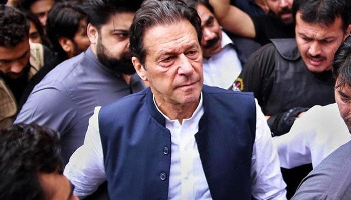 عمران خان کے خلاف نعرے بازی کرنے والوں نے سٹیج کی طرف بڑھنے کی کوشش کی توسکیورٹی اہلکاروں نے انہیں روک دیا۔