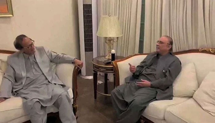 دوران ملاقات آصف علی زرداری نے چوہدری شجاعت حسین کی خیریت دریافت کی۔