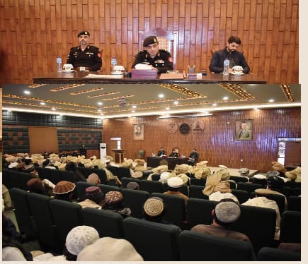 جرگے کے دوران سیکورٹی کی موجودہ صورتحال امن وآمان کی بحالی کے لئے سیکورٹی فورسز اور عمائدین کی مشترکہ کوششوں پر تفصیلی تبادلہ خیال کیا گیا۔