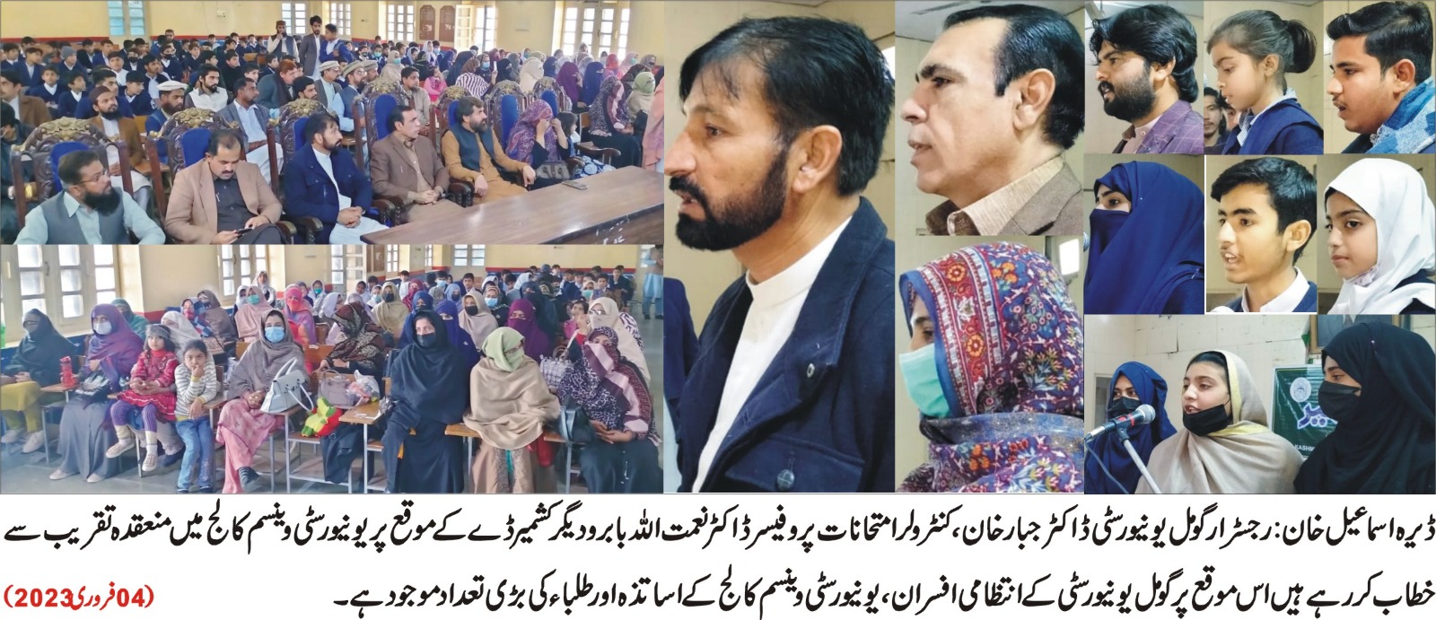 ڈیرہ اسماعیل خان(رپورٹ آدم خان وزیر سے) گومل یونیورسٹی کے وینسم کالج میں کشمیر ڈے کی مناسبت سے پروقار تقریب کا انعقاد کیا گیا۔