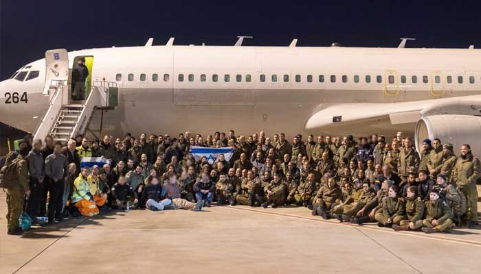 اسرائیلی فوج اور وزارت صحت کے مشترکہ وفود پر مشتمل 15 طیاروں میں 230 فوجی اہلکار اور سیکڑوں ٹن امدادی سامان تھا۔