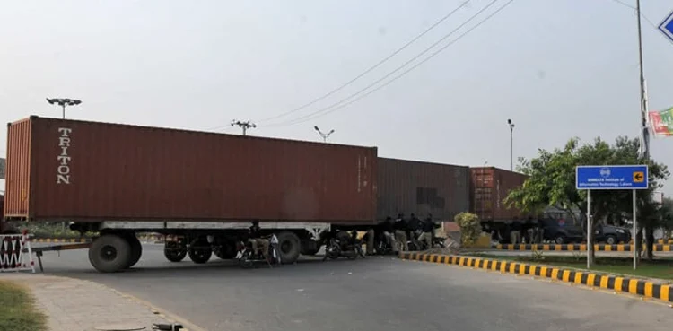 ضلعی نتظامیہ کی جانب سے کہا گیا ہے کہ کنٹینرز ریلی کی سیکیورٹی کیلئے لگائے گئے ہیں۔