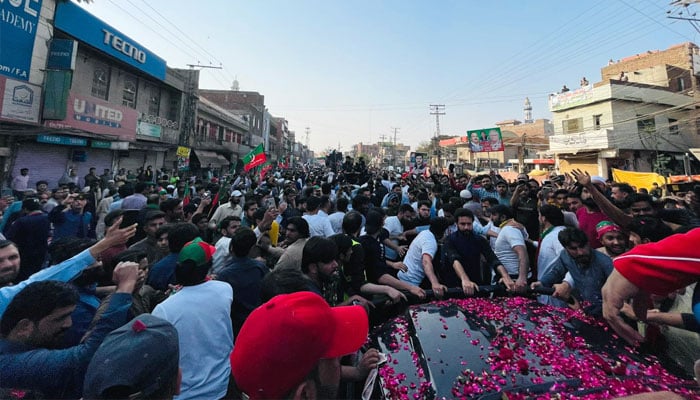 لاہور میں عمران خان کی قیادت میں تحریک انصاف کی انتخابی ریلی جاری ہے، انتخابی ریلی گڑھی شاہو پہنچ گئی، راستے میں جگہ جگہ ریلی کا استقبال کیا گیا۔