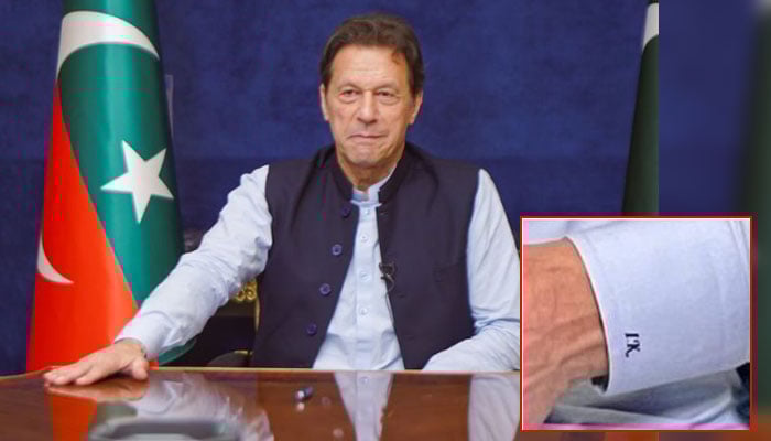 سوشل میڈیا پر اس وقت ایک تصویر وائرل ہو رہی ہے جس میں عمران خان کی آستین کے کف کو فوکس کیا گیا ہے، عمران خان کے وائرل ہونے والے اس کف پر ’آئی کے‘ لکھا ہوا ہے جسے اُن کے مداحوں کی جانب سے نیا ٹرینڈ قرار دیا جا رہا ہے۔