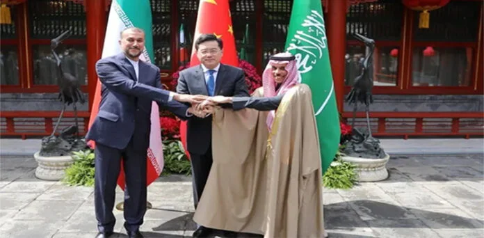 بین الاقوامی میڈیا رپورٹس کے مطابق سعودی عرب ایران کے وزرائے خارجہ کی ملاقات کے بعد مشترکہ بیان جاری کر دیا گیا ہے۔ چینی وزیر خارجہ کی جانب سےعشائیے میں دونوں ممالک کے وزرائےخارجہ شریک ہوئے۔