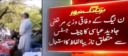 مسلم لیگ (ن) کے وفاقی وزیر اور سابق ڈپٹی اسپیکر قومی اسمبلی مرتضیٰ جاوید عباسی نے چیف جسٹس پاکستان سے متعلق نازیبا الفاظ کا استعمال کیا ہے۔
