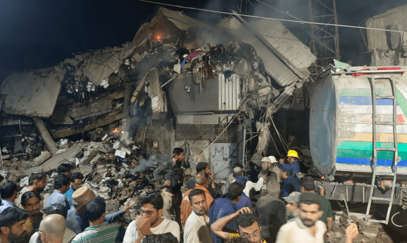 آتشزدگی کا شکار ہونے والی دو فیکٹریوں کی عمارتیں زمین بوس ہوگئیں، جس کے ملبے تلے دب کر چار فائر فائٹرز جاں بحق اور تیرہ زخمی ہوگئے۔