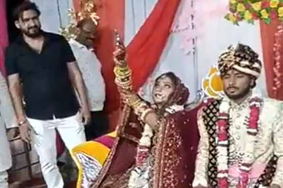 بھارت میں شادی پر دُلہن نے سٹیج پر دولہے کے ساتھ ہی بیٹھے ہوائی فائرنگ کی جس پر پولیس نے تحقیقات کا آغاز شروع کردیا ہے۔