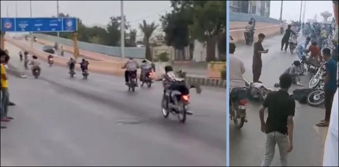 شہر قائد کے علاقے گزری پل پر وَن ویلنگ کے دوران دل دہلا دینے والا حادثہ پیش آیا ہے، کئی رائڈرز بری طرح ٹکرا کر شدید زخمی ہو گئے ہیں۔