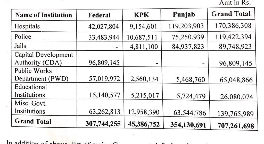 کمانڈنٹ پولیس ٹریننگ کالج سہالہ اسلام آباد 36,296,437، ڈپٹی ڈائریکٹر مکینیکل ڈویژن II (پارلیمنٹ لاجز) کمرہ نمبر 1 بلاک کیو پاکستان سیکٹریٹ بلڈنگ اسلام آباد برائے گورنمنٹ ہاسٹل 21,032,263، اسسٹنٹ ایگزیکٹو انجینئر برائے فیڈرل لاج-I، جی-5 ا سلام آباد 20،864،590، ڈپٹی ڈائریکٹر ایم ای سی ایچ ڈویژن 2 ( فارن آفس ) کمرہ نمبر1 بلاک کیو پاک سیکٹریٹ بلڈنگ اسلام آباد پاک ہاؤس16،180،691 میڈیکل ڈائریکٹر چلڈرن ہسپتال فیروز پور روڈ لاہور12،348،072 ،میڈیکل سپرنٹنڈنٹ سروسز ہسپتال جیل روڈ لاہور 10،871،424، سپرنٹنڈنٹ ڈسٹرکٹ جیل میس شورکوٹ روڈ ٹی ٹی سنگھ 10,507,926، سپرنٹنڈنٹ جیل سنٹرل جیل گوجرانوالہ 10,149,647 ڈپٹی ڈائریکٹر ای /ایم سی ڈی اے ( کیبنٹ ڈویژن ) میں ٹینس ڈویژن پارلیمنٹ ہاؤس سی ڈی اے اسلام آباد 10،129،158 ، ڈپٹی ڈائریکٹر ایم ای سی ایچ 1 سی ڈی اے سپریم کورٹ آف پاک بلڈنگ اسلام آباد 8،599،374 ، سپرنٹنڈنٹ جیل سینٹرل جیل کوٹ لکھپت لاہور 8,556,624 ، ایس ڈی او بلوچستان ہاؤس ایف – 2/5 آغا خان روڈ اسلام آباد 8،401،165، ایم / ایس شفیع ٹیکسٹائل لمیٹڈ (کھانا پکانا/پانی گرم کرنا) رہائشی کالونی رائیونڈ مانگا روڈ 405-کلومیٹر ضلع قصور 8،364،499 ، ڈپٹی ڈائریکٹر مکینیکل ڈویژن 2 کمرہ نمبر 1 بلاک کیو پاک سیکٹ بلڈ نگ، بلاک – کے اسلام آباد 8،188،060 ، XEN پنجاب ہاؤس سیکٹر ایف-5 اسلام آباد 7،464،108 ، ڈپٹی ڈائریکٹر ایئرکنڈیشن سی ڈی اے سیکرٹریٹ بلڈنگ ایم بلاک اسلام آباد 7،232،956 ،سپرنٹنڈنٹ جیل ڈسٹرکٹ جیل لاہور 6،958،180 ، میڈیکل سپرنٹنڈنٹ سروسز ہسپتال ریڈیالوجی ڈیپارٹمنٹ بلڈنگ سروسز ہسپتال جیل روڈ لاہور6،828،541، ڈپٹی ڈائریکٹر میکنکل ڈویژن نمبر 1 سی ڈی اے اسلام آباد پرائم منسٹر سیکرٹریٹ اسلام آباد6،636،218 ،میڈیکل سپرنٹنڈنٹ ماڈرن برن یونٹ نشتر ہسپتال میڈیکل سپرنٹنڈنٹ ماڈرن برن یونٹ نشتر ہسپتال ملتان 3،566،367 ، جامع مسجد قبا پلاٹ نمبر 3 ، I-8ایم کے زی نزد شیل پٹرول پمپ اسلام آباد 6،459،894 ، ایئرپورٹ سیکیورٹی فورس نیو اسلام آباد انٹرنیشنل ایئر پورٹ اسلام آباد 6،454،103 ، اسسٹنٹ ایگزیکٹو انجینئر سب ڈویژن 1 پاک پی ڈبلیو ڈی فیڈرل لاج 2 ،جی- 5 اسلام آباد 5،802،165 ، میڈیکل سپرٹینڈنٹ او- بی ڈسٹرکٹ ایچ-کیو ہسپتال میانوالی روڈ سرگودھا 5،519،103 ، سیمی پرمیننٹ پولیس بیرک ایم او- 3 اتا ترک ایویو نزد ایوب چوک ایف- 5 اسلام آباد 5،507،721 ،اسسٹنٹ انجینئراسٹور پاک پی ڈبلیو ڈی فیمیل ہاسٹل سیکٹر جی/5 اسلام آباد 4،827،611 ، سپرنٹنڈنٹ جیل ڈسٹرکٹ جیل سرگودھا 4،663،838 ، ایگزیکٹو ڈائریکٹر ایم-سی ہیلتھ سنٹر پمز سیکٹر جی- 8/3 اسلام آباد 4،660،317 ،اسسٹنٹ ایگزیکٹو انجینئر(پی ایم ہاؤس) کمپلیکس اسلام آباد 4،632،966 ، پراجیکٹ ڈائریکٹراسلام آباد ہسپتال کمپلیکس منسٹری آف ہیلتھ سوشل ویلفیئر گورنمنٹ آف پاکستان اسلام آباد 4،536،217 ، سپرنٹنڈنٹ نیو سنٹرل جیل سٹیڈیم روڈ بہاولپور 4،526،144 ، ڈپٹی ڈائریکٹر مکینیکل ڈویژن 2 کمرہ نمبر 1 بلاک کیو پاک سیکرٹیریٹ بلڈنگ اسلام آباد 4،467،336 ، مس لیڈی ویلنگٹن ہسپتال راوی روڈ لاہور 4،433،308 ، میڈیکل سپرنٹنڈنٹ ڈسٹرکٹ ہیڈ کوارٹر ہسپتال شیخوپورہ 4،207،190 ،ایگزیکٹو انجینئر(سی ای ایم) ڈویژن-1 پاک پی ڈبلیو ڈی اسلام آباد کونسٹیٹیوشن ایونیو (کوہسار بلاک) سیکٹر ایف-5 ، نزد پاک سیکرٹریٹ اسلام آباد 4،161،696 ، میڈیکل سپرنٹنڈنٹ نیو او پی ڈی بلاک سروس ہسپتال، لاہور 4،008،672 ،ایم ایس سروسز ہسپتال جیل روڈ لاہور 3،925،552 ، سپرنٹنڈنٹ ڈسٹرکٹ جیل ڈسٹرکٹ جیل جہلم 3،881،295 ، سینئر سپرنٹنڈنٹ پولیس لائنز بارکس چکوال 3،800،382 ، ڈپٹی ڈائریکٹر (ایم این اے ایز ہاسٹل) ایئر کنڈیشننگ ایف/ 5-2 اسلام آباد 3،670،468 ،سپرنٹنڈنٹ سنٹرل جیل بالمقابل کورٹ پشاور 3،574،784 ، ایگزیکٹو انجینئر لاہور سنٹرل ای -ایم 5 چمبہ ہاؤس لاہور3،430،087 ،میڈیکل سپرنٹنڈنٹ (انسینیٹر کے لیے) ڈی ایچ کیو ہسپتال قصور 3،414،616 ، میڈیکل سپرنٹنڈنٹ سرجیکل وارڈ اینٹ وارڈ میڈیکل وارڈ نمبر 1 اور 2 بہاول وکٹوریہ ہسپتال بہاولپور 3،342،210 ، ڈپٹی ڈائریکٹر مکینیکل فیڈرل گورنمنٹ سروسز ہسپتال جی- 6/3 اسلام آباد 3،311،012 ، ایم-ایس بلی