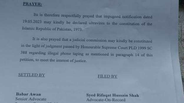 درخواست میں اس بات کا بھی زکر کیا گیا ہے کہ سپریم کورٹ کے کس جج کے خلاف تحقیقات یا کارروائی کا فورم صرف سپریم جوڈیشل کونسل ہے۔