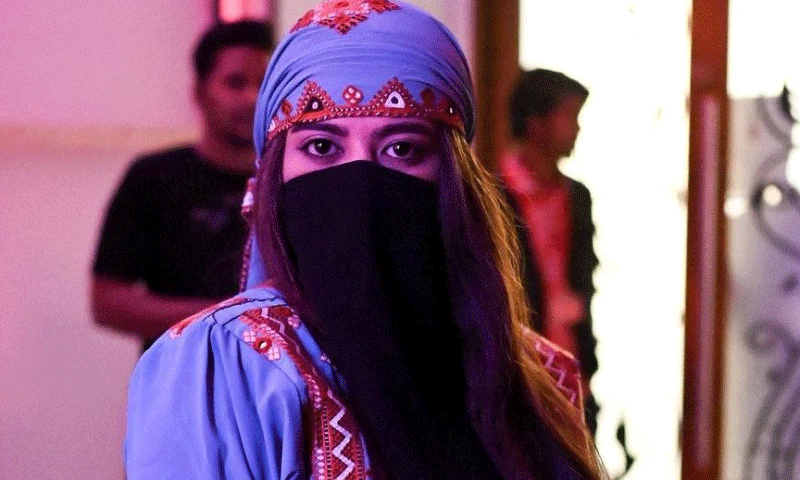 ویڈیو میں گلوکارہ کو روایتی بلوچی لباس، حجاب اور نقاب کے ساتھ دیکھا جاسکتا ہے۔