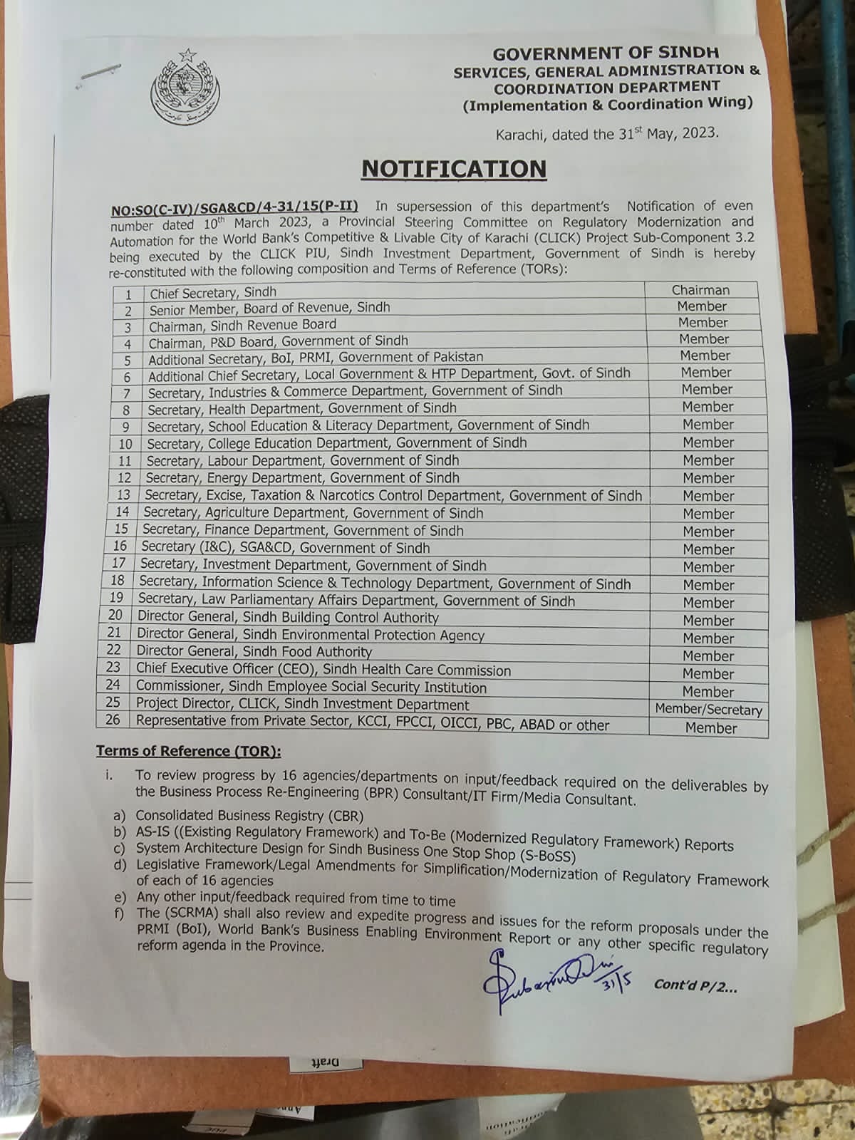 کراچی ( رپورٹ شکیل نائچ ) حکومت سندھ نے کراچی کی ترقی اور نئی سرمایہ کاری کے لئے عالمی بنک کے منصوبہ کلک پر عملدرآمد کے لئے چیف سیکریٹری کی سربراہی میں 26 رکنی اسٹیئرنگ کمیٹی تشکیل دے دی ہے