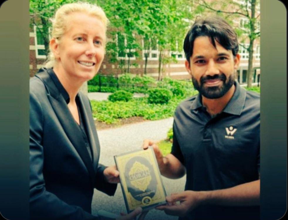 تاہم ہارورڈ یونیورسٹی کےایجوکیشن پروگرام کے دوران بیٹر محمد رضوان نے اپنی استاد کو قرآن پاک کا انگریزی ترجمہ تحفے میں دیا، جس کی تصویر بھی سوشل میڈیا پر کافی وائرل ہورہی ہے۔