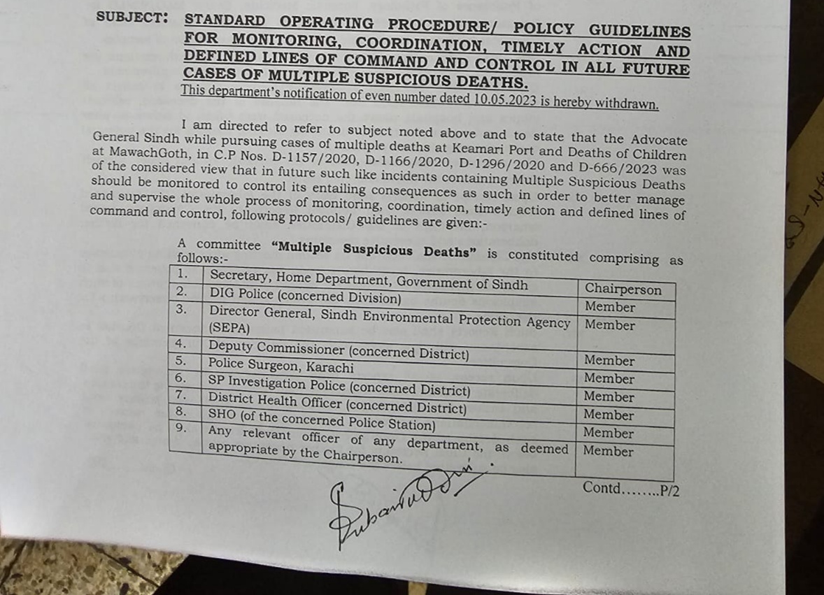 ایسی صورت میں ہنگامی حالات کے پیش نظر سیکریٹری محکمہ داخلہ کی سربراہی میں 8 رکنی کمیٹی تشکیل دی گئی ہے کمیٹی میں متعلقہ ڈی آئی جی ، دائریکٹر جنرل سندھ ادارہ تحفظ ماحولیات ، متعلقہ ڈپٹی کمشنر ، پولیس سرجن کراچی ، متعلقہ ایس پی انویسٹیگیشن ، متعلقہ ڈی ایچ او اور متعلقہ ایس ایچ او کو شامل کیا گیا ہے