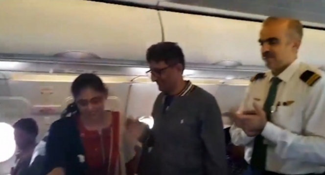 پرواز میں موجود ایک میوزیکل گروپ نے گیت گا کر عبدالرافع اور شائستہ صدیقی کی شادی کی 30 ویں سالگرہ کو یادگار بنا دیا