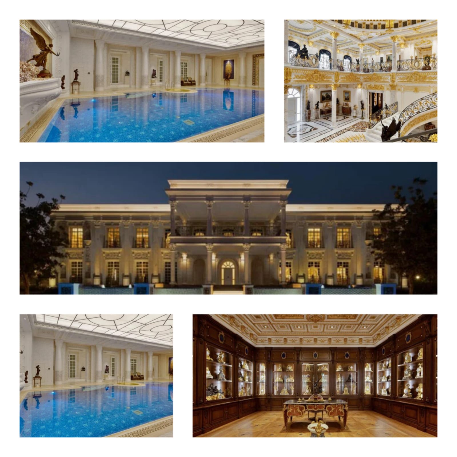 گھر کی نچلی منزل میں کھانے اور انٹرٹینمنٹ کے لیے کمرے موجود ہیں جبکہ گیراج میں 15 گاڑیاں کھڑی کی جاسکتی ہیں۔