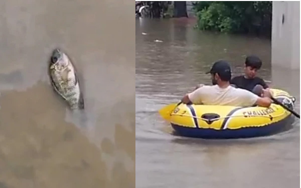 لاہور میں بارش کے بعد نہر کے پانی کے ساتھ مچھلیاں بھی سڑکوں پر آگئیں، کلمہ چوک انڈر پاس میں مچھلیوں کی ویڈیو سوشل میڈیا پر وائرل ہوگئی۔ لاہور میں ہونے والی موسلادھار بارشوں سے 30 سالہ ریکارڈ ٹوٹ گیا، شہر کی سڑکیں تالاب بن گئیں اور بجلی کا نظام درہم برہم ہوگیا۔