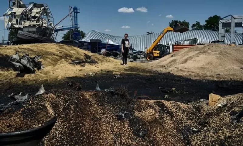 روس نے رات گئے یوکرین کے اناج کے ذخیرے کو نشانہ بنایا۔ یوکرین کے وزیر خارجہ دمترو کلیبا نے ٹوئٹر پر لکھا کہ ’’گودام میں جہاں اناج کی فصلیں رکھی گئی تھیں، تباہ کر دیے گئے۔ حملے میں سامان کو ذخیرہ کرنے کے لیے بنائے گئے ٹینکوں کو نقصان پہنچا۔