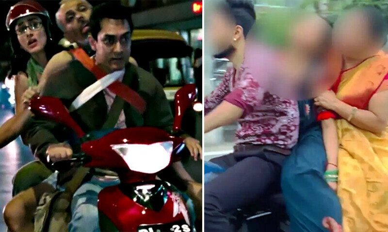 جانےنہیں دیں گے تجھے بنا چالان کے : دہلی پولیس نے تھری ایڈیٹس کے سین کا ری میک کرنے والے کا چالان کر دیا