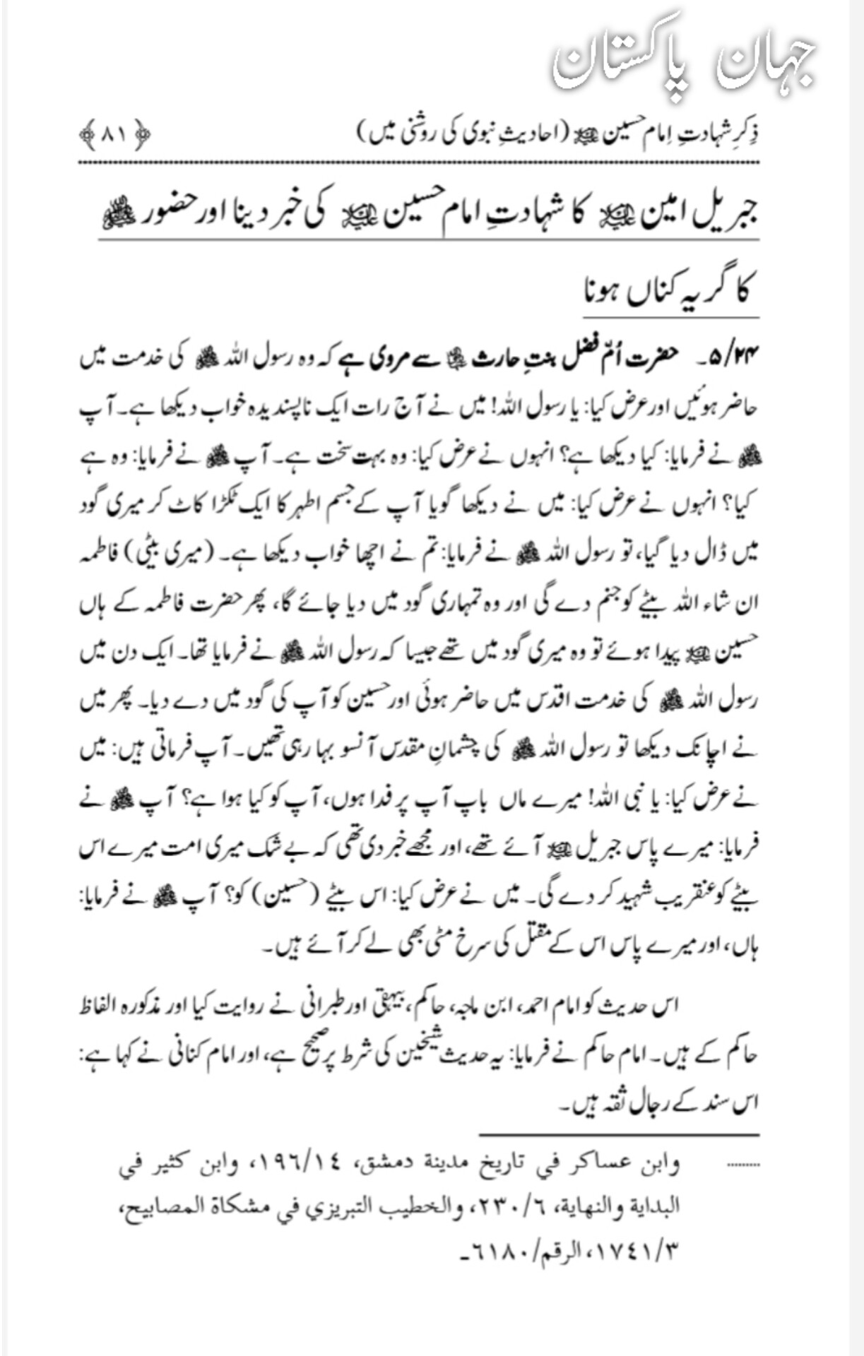 جب حضرت جبرائیل نے رسول اللّٰہ کو حضرت حسین علیہ السّلام کی شہادت کے بارے میں آگاہ کیا ، جانیئے صحیح حدیث کی روشنی میں