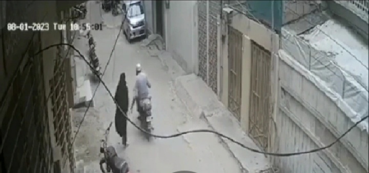 لڑکی سے نازیبا حرکت کا سارا واقعہ سی سی ٹی وی میں قید ہوگیا جس میں موٹر سائیکل سوار کو لڑکی سے نازیبا حرکت کرتے دیکھا گیا۔