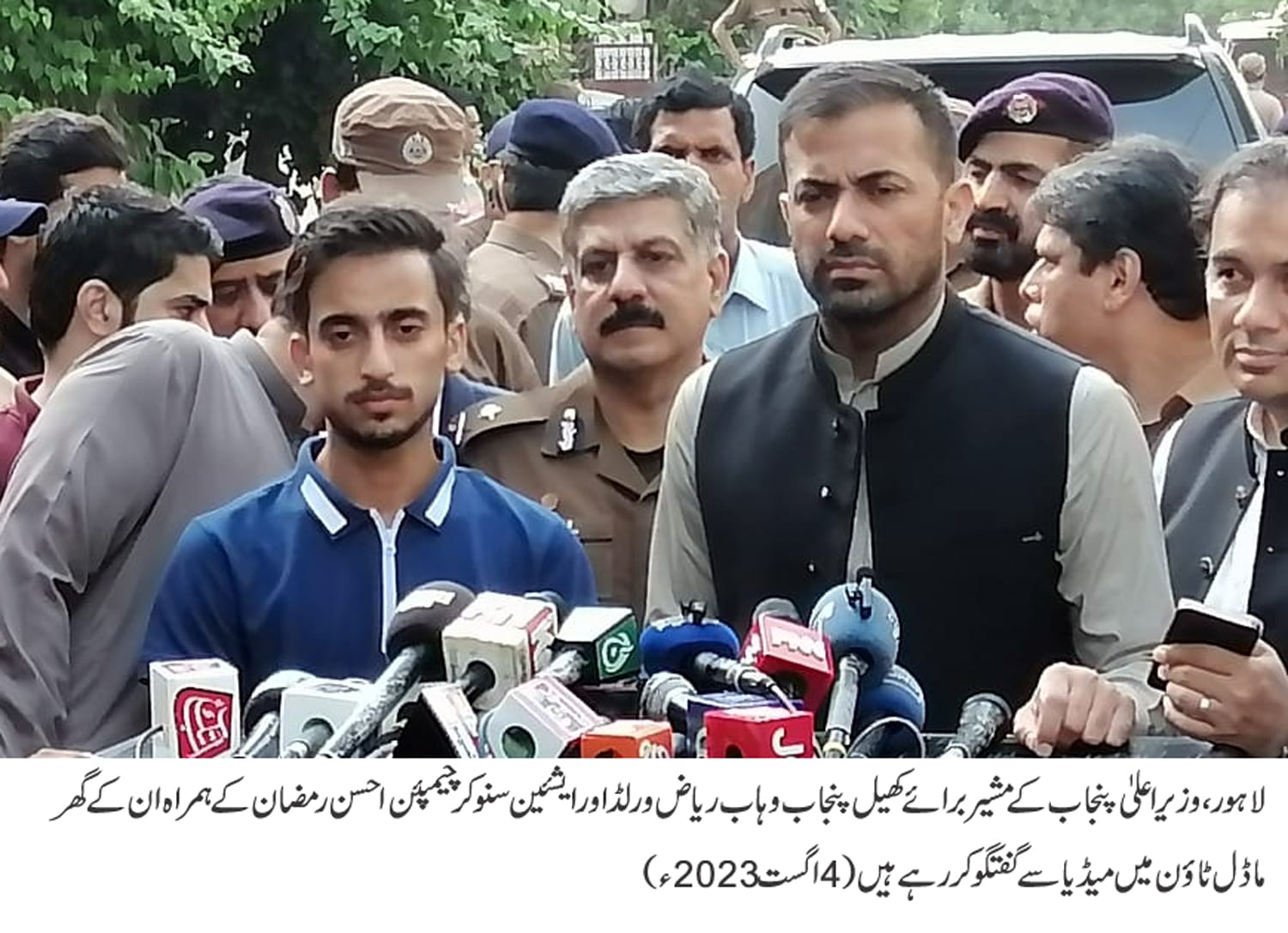 وزیراعلی پنجاب کے مشیر برائے کھیل وامور نوجوانان وہاب ریاض کوصوبائی وزیر اطلاعات عامر میر کے ہمراہ ورلڈ ایشیئن سنوکر چیمئپن احسن رمضان کے گھر گئے اور افسوسناک واقعہ پر افسوس کا اظہار کیا، اس موقع پر کمشنر لاہور محمد علی رندھاوا،سی سی پی او بلال صدیق کمیانہ، ڈائریکٹرسید عمیر حسن،احسن رمضان کے کوچ عمران نوشاہی بھی موجود تھے،میڈیا سے گفتگو کرتے ہوئے مشیر کھیل وامور نوجوانان پنجاب وہاب ریاض نے کہا ہے کہ احسن رمضان ہمارے قومی ہیرو ہیں، ان کی پذیرائی ہم پر فرض ہے، انہوں نے کم عمری میں پاکستان کا نام دنیا میں روشن کیا ہے جس پر ہم سب کو فخر ہے، انہوں نے کہا کہ افسوسناک واقعہ کی پولیس انکوائری شروع کردی گئی ہے جس کی رپورٹ 5اگست کو پیش کردی جائے گی،واقعہ کے ذمہ داران کیخلاف سخت کارروائی کی جائے گی،مشیر کھیل وامور نوجوانان وہاب ریاض نے مزید کہا ہے کہ احسن رمضان کی ملک کیلئے خدمات کو خراج تحسین پیش کرتے ہیں، ان سے ہر طرح سے تعاون کررہے ہیں، احسن رمضان کو سبزہ زار سپورٹس کمپلیکس کی ممبر شپ دیدی گئی ہے تاکہ وہ انٹرنیشنل ایونٹس کی بھرپور تیاری کرسکیں، سنوکر ٹیبل بھی دے رہے ہیں، دیگر سہولیات بھی فراہم کی جائیں گی، ہم احسن رمضان کے ساتھ کھڑے ہیں،ہمارا تعاون ہمیشہ ان کے ساتھ رہے گا۔لاہورٟ سپورٹس رپورٹرٞ وزیراعلی پنجاب کے مشیر برائے کھیل وامور نوجوانان وہاب ریاض جمعÃ المبارک کوصوبائی وزیر اطلاعات عامر میر کے ہمراہ ورلڈ اور ایشیئن سنوکر چیمئپن احسن رمضان کے گھر گئے اور افسوسناک واقعہ پر افسوس کا اظہار کیا، اس موقع پر کمشنر لاہور محمد علی رندھاوا،سی سی پی او بلال صدیق کمیانہ، ڈائریکٹرسید عمیر حسن،احسن رمضان کے کوچ عمران نوشاہی بھی موجود تھے،میڈیا سے گفتگو کرتے ہوئے مشیر کھیل وامور نوجوانان پنجاب وہاب ریاض نے کہا ہے کہ احسن رمضان ہمارے قومی ہیرو ہیں، ان کی پذیرائی ہم پر فرض ہے، انہوں نے کم عمری میں پاکستان کا نام دنیا میں روشن کیا ہے جس پر ہم سب کو فخر ہے، انہوں نے کہا کہ افسوسناک واقعہ کی پولیس انکوائری شروع کردی گئی ہے جس کی رپورٹ 5اگست کو پیش کردی جائے گی،واقعہ کے ذمہ داران کیخلاف سخت کارروائی کی جائے گی،مشیر کھیل وامور نوجوانان وہاب ریاض نے مزید کہا ہے کہ احسن رمضان کی ملک کیلئے خدمات کو خراج تحسین پیش کرتے ہیں، ان سے ہر طرح سے تعاون کررہے ہیں، احسن رمضان کو سبزہ زار سپورٹس کمپلیکس کی ممبر شپ دیدی گئی ہے تاکہ وہ انٹرنیشنل ایونٹس کی بھرپور تیاری کرسکیں، سنوکر ٹیبل بھی دے رہے ہیں، دیگر سہولیات بھی فراہم کی جائیں گی، ہم احسن رمضان کے ساتھ کھڑے ہیں،ہمارا تعاون ہمیشہ ان کے ساتھ رہے گا۔