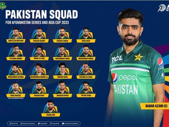 لاہور ٟ (محمد اخلاق اسلم ) ایشیا کپ اور افغانستان کے خلاف ون ڈے سیریز کیلئے پاکستان کرکٹ ٹیم کا اعلان کردیا گیا، فہیم اشرف، طیب طاہر اور سعود شکیل کو سکواڈ کا حصہ بنایا گیا ہے۔پاکستان کرکٹ ٹیم کے چیف سلیکٹر انضمام الحق نے ایشیا کپ کیلئے 17 رکنی اور افغانستان کے خلاف ون ڈے سیریز کیلئے 18 رکنی سکواڈ کا اعلان کیا ہے۔سعود شکیل کو افغانستان کے خلاف سیریز کیلئے 18 رکنی اسکواڈ میں شامل کیا گیا ہے اور وہ ایشیا کپ کے 17 رکنی اسکواڈ میں شامل نہیں ہیں۔ومی سلیکشن کمیٹی میں انضمام الحق کے علاوہ ٹیم ڈائریکٹر مکی آرتھر اور ہیڈ کوچ گرانٹ بریڈ برن شامل ہیں جنہوں نے کپتان بابراعظم کے ساتھ مشاورت کے بعد ٹیم کو حتمی شکل دی ہے۔ ایشیا کپ کیلئے 17 رکنی پاکستانی سکواڈ عبداللہ شفیق، فخرزمان، امام الحقٟ اوپنرزٞمڈل آرڈر: بابراعظم ( کپتان )، سلمان علی آغا، افتخار احمد، طیب طاہر ،وکٹ کیپرز: محمد رضوان، محمد حارث ،سپنرز: شاداب خان ( نائب کپتان )، محمد نواز، اسامہ میرپیس آل راونڈر: فم اشرف پیسرز: حارث روف، محمد وسیم جونیئر ، نسیم شاہ، شاہین شاہ آفریدی پر مشتمل ہے دوسری جانب افغانستان کے خلاف سیریز کا 18 رکنی سکواڈ اوپنرز : عبداللہ شفیق، فخرزمان، امام الحقمڈل آرڈر: بابراعظم ( کپتان )، سلمان علی آغا، افتخار احمد، طیب طاہر اور سعود شکیل وکٹ کیپرز: محمد رضوان، محمد حارث سپنرز: شاداب خان ( نائب کپتان ) ، محمد نواز، اسامہ میرپیس آل راونڈر: فہیم اشرفپیسرز: حارث روف، محمد وسیم جونیئر، نسیم شاہ، شاہین آفریدی طیب طاہر اور فہیم اشرف کو شان مسعود اور احسان اللہ کی جگہ ٹیم میں شامل کیا گیا۔پاکستان کرکٹ بورڈ کی جانب سے جاری اعلامیے کے مطابق سلیکٹرز نے اس سال اپریل مئی میں نیوزی لینڈ کے خلاف پانچ ون ڈے میچوں کی سیریز کھیلنے والے اسکواڈ میں دو تبدیلیاں کی ہیں۔ طیب طاہر اور فہیم اشرف کو شان مسعود اور احسان اللہ کی جگہ ٹیم میں شامل کیا گیا ہے۔ان کے علاوہ سعود شکیل کو بھی سکواڈ میں شامل کیا گیا ہے۔