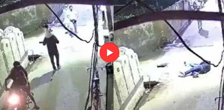 سوشل میڈیا پر وائرل ویڈیو میں دیکھا جاسکتا ہے کہ شعیب اپنی بیٹی کو کندھے پر اٹھائے پیدل جارہا ہے جبکہ دو افراد مخالف سمت سے موٹر سائیکل پر آئے اور کچھ فاصلے پر رک گئے۔
