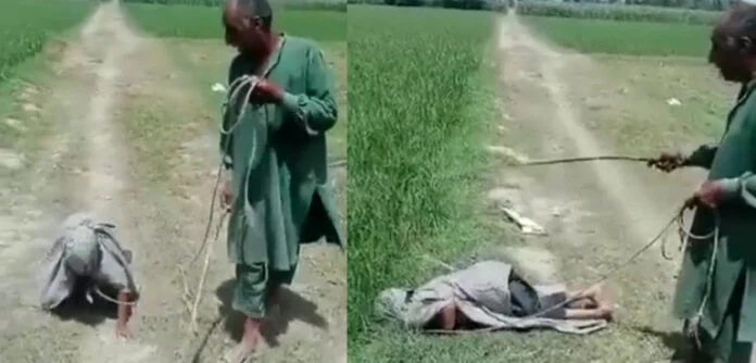 انسانیت شرما گئی، بات نہ ماننے پر زمیندار نے غریب آدمی کو کتا بنا دیا، ویڈیو وائرل