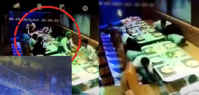 اس ساری صورتحال کو ہوٹل اور باہر لگے کیمروں نے محفوظ کر لیا جس میں دیکھا جا سکتا ہے کہ ہوٹل کے باہر کچھ لوگ فائرنگ کر رہے ہیں جب کہ کھانے کے لیے موجود گاہک خوفزدہ ہو کر اپنی جانیں بچانے کے لیے وہاں سے بھاگتے ہیں جب کہ کئی افراد میزوں کے نیچے چھپ جاتے ہیں۔