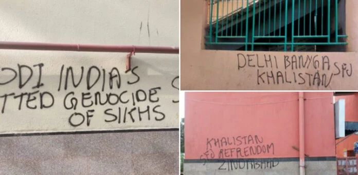 بھارت میں جی 20 اجلاس سے قبل دیواروں پر نامعلوم افراد کی جانب سے خالصتان کے حق میں نعرے لکھ دیے گئے جس کے بعد پولیس کی دوریں لگ گئیں۔