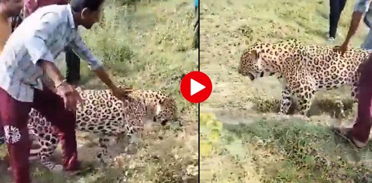 تیندوے کو دیکھ کر لوگ اس کے قریب جانے سے بھی گھبراتے ہیں لیکن سوشل میڈیا پر وائرل ویڈیو میں لوگ تیندوے کے قریب موجود ہیں اور اس کے ساتھ تصاویر بنوارہے ہیں۔